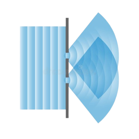 - A monochromatic coherent light source (such as a laser) emits light waves towards a screen with two narrow slits