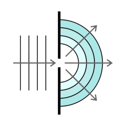 - The process of waves spreading when they arrive at a barrier with an opening, or at an obstacle of some limited width